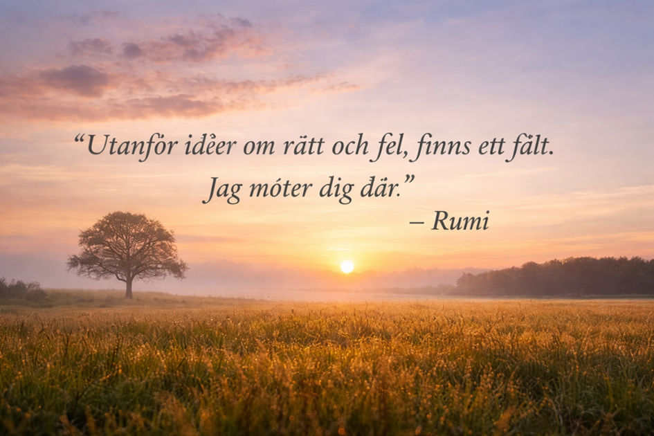 “Out beyond ideas of wrongdoing and rightdoing, there is a field. I’ll meet you there.”